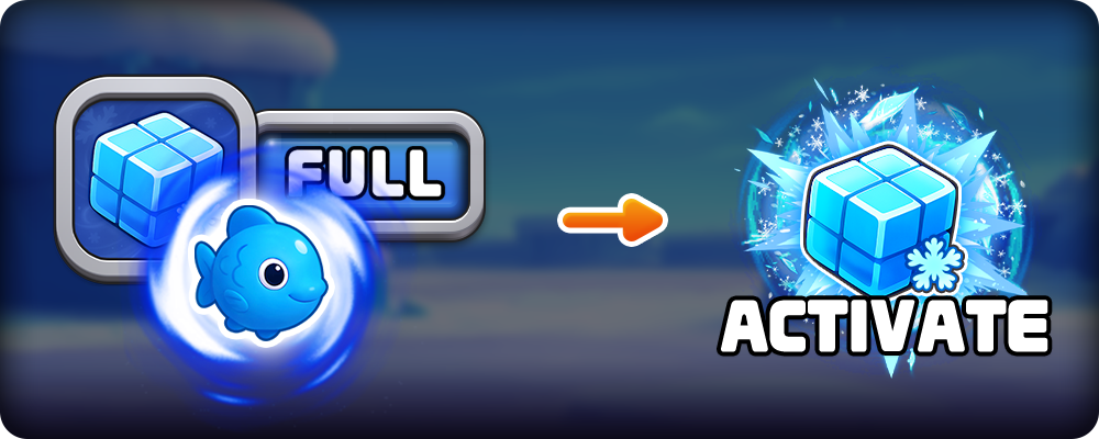 - スキルを発動すると、3つのタイルとその周囲のタイルをランダムにクリアし、相手ターン中にタイルを凍らせる十字形の領域を残します。