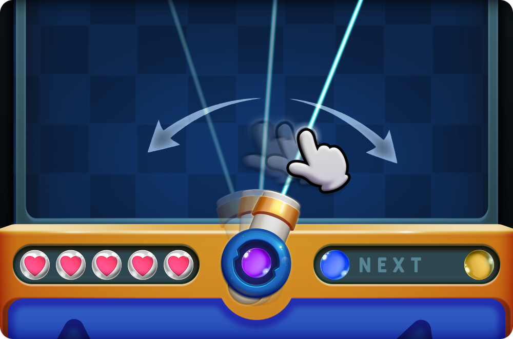 - 같은 색의 버블을 3개 이상 맞춰 터뜨리고, 버블이 벽에 부딪히지 않도록 하세요.