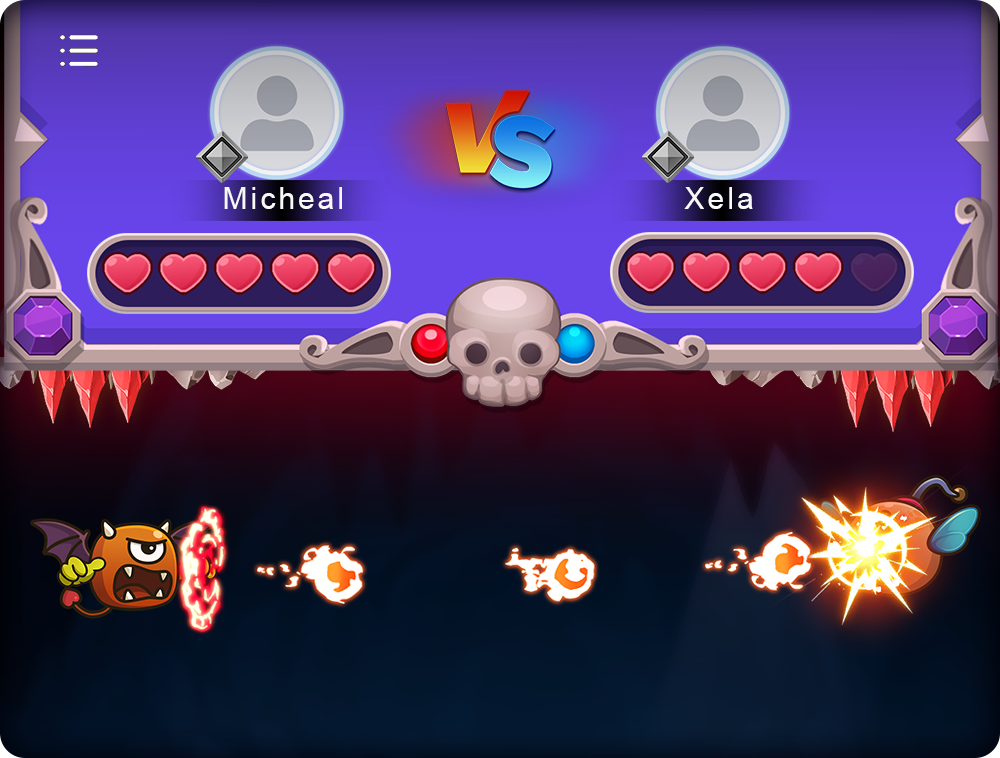 - 시간이 종료되면 남은 생명이 더 많은 쪽이 승리합니다.
