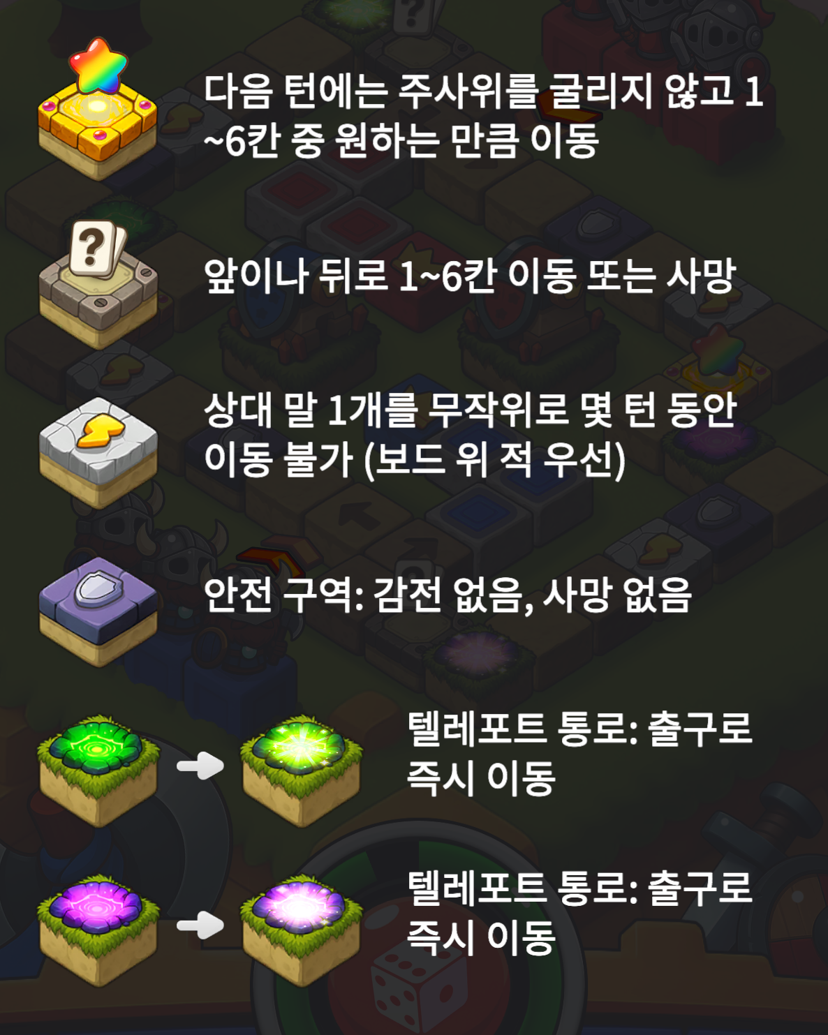- 안전 구역 타일에 도착하면 2포인트를 획득합니다.