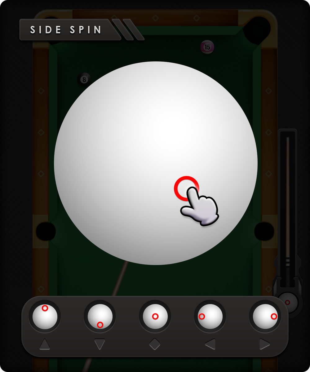 - Leret kayu cue di sebelah kanan untuk membuat pukulan.