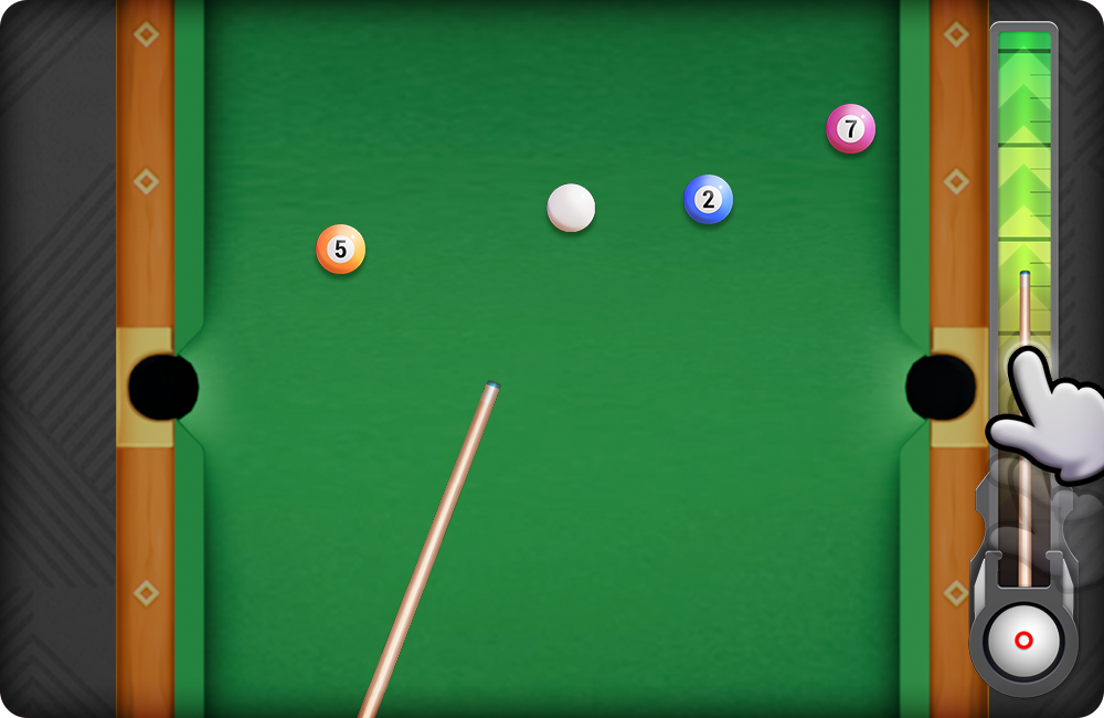 - 點擊右側的白球圖示,調整擊球位置以施加旋轉效果。