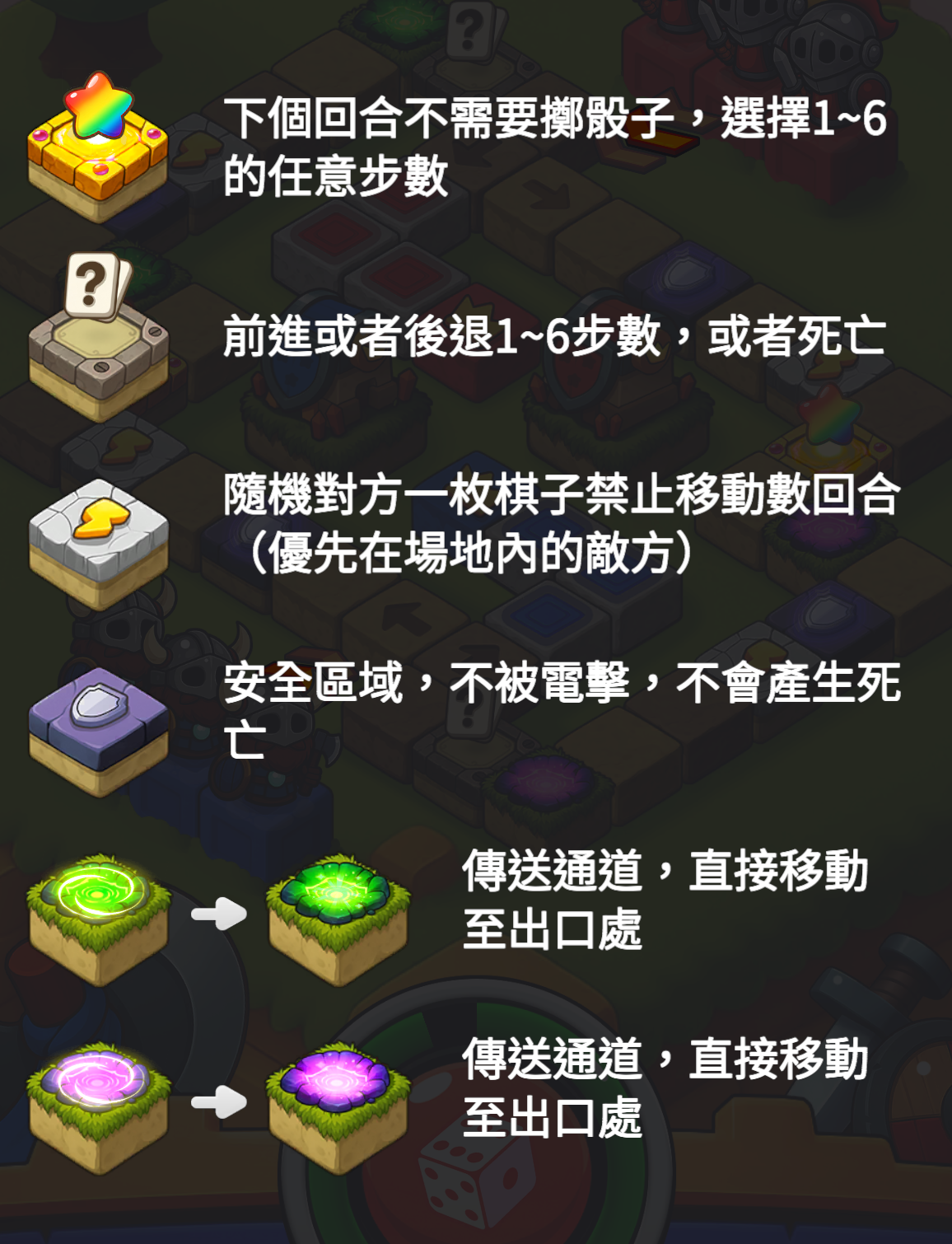 - 死亡後,你的棋子會返回起點。