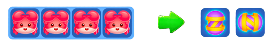- 消除14個指定顏色可獲得一個隨機形態的火箭道具。